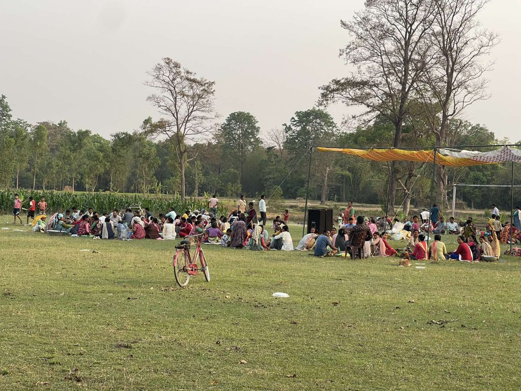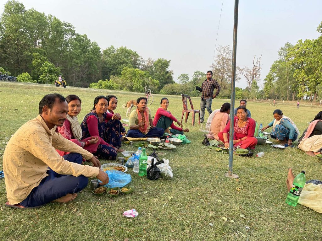 यो दृश्य हो खुला चौरमा बसी अबेर घर फर्किएका कैलालीको घोडाघोडी नगरपालिका–३ नारायणपुरका थारु समुदायको । सोमबार नारायणपुरका एक सय ७१ परिवार दिनभरि खुला चौरमा बसेर पूजा गरी खानपिनसँगै रमाइलो गरेर अबेर घर फर्किए । केही दिनअघि घोडाघोडी एक श्रष्टिनगरका थारु समुदाय पनि खुला चौरमा बसी त्यहीँ खानपिन गरेर बेलुका घर फर्किए ।