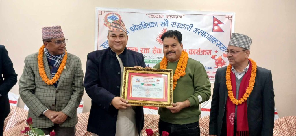धनगढी/पत्रकार एवम् सुदूरपश्चिम प्रदेशमा सबैभन्दा बढी पटक रक्तदान गर्नु भएका रक्तदाता दीपक उपाध्याय रक्तदान सद्भाव दूतमा नियुक्त भएका छन् ।