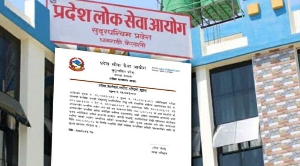 सर्वोच्च अदालतको अल्पकालिन अन्तरिम आदेशपछि प्रदेश लोकसेवा आयोग सुदूरपश्चिमले परीक्षा स्थगित गरेको छ । आयोगले गतवर्ष फागुन २० गते जारी गरेको प्रदेश निजामती सेवाका अधिकृत नवौं तहका अप्राविधिक÷प्राविधक पदहरुको ज्येष्ठता र कार्यसम्पादन मूल्यांकनद्वारा हुने बढुवा र कार्यक्षमताको मूल्यांकनद्वारा हुने बढुवाको विज्ञापन परिपूर्तिका लागि तय गरेको परीक्षा सर्वोच्चको आदेशपछि स्थगित गरेको हो ।