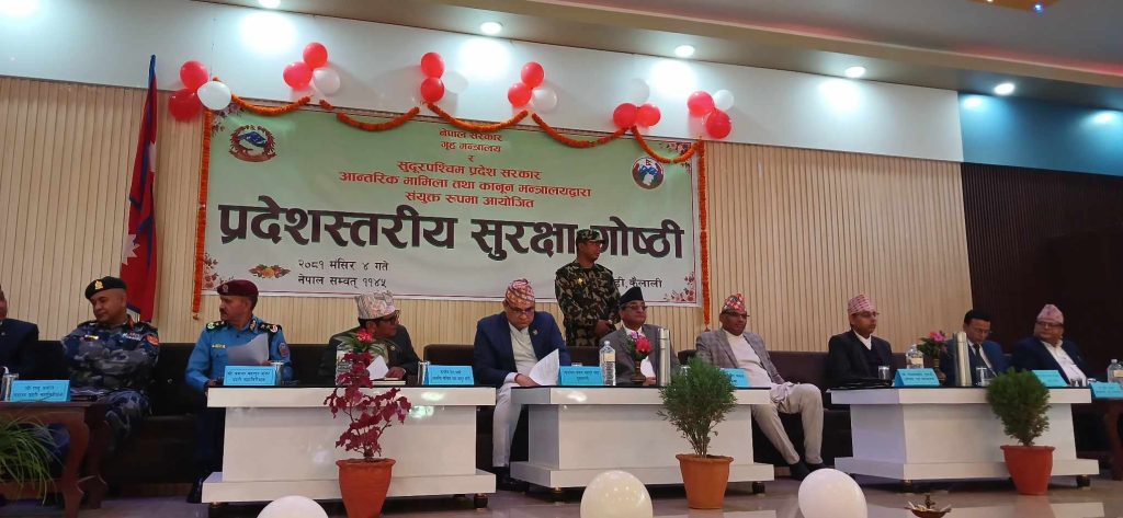 सुदूरपश्चिम प्रदेशमा वन्यजन्तु आक्रमण, बाढी, पहिरो, डुबान जस्ता दैवी प्रकोपका घटना बढेकाले त्यसको व्यवस्थापनको जिम्मेवारी पनि सुरक्षा निकायको काँधमा रहेको उनले बताए। सुदूरपश्चिममा दुर्घटनामा ठूलो धनजनको क्षति भइरहेकोले विशेष कार्य योजना बनाएर काम गर्न ट्राफिक प्रहरीलाई उनले निर्देशन दिए। कार्यक्रममा सुदूरपश्चिम प्रदेशका ९ वटै जिल्लाका सुरक्षा निकायका प्रमुखको उपस्थिति रहेको छ। वार्षिकरुपमा हुने प्रदेशस्तरीय सुरक्षा गोष्ठी विगत दुई वर्षदेखि सुदूरपश्चिममा हुन सकेको थिएन। दुई वर्षपछि सुरक्षा गोष्ठी यसपटक भएको हो।