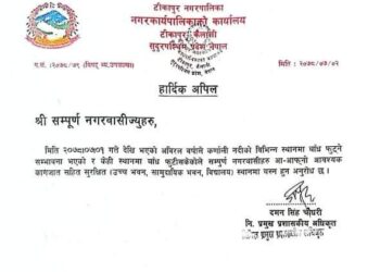 टीकापुर/ कैलालीको टीकापुर स्थित पुर्व पश्चिम हुलाकी सडक पुर्णरुपमा अवरुद्ध भएको छ । टीकापुर नगरपालिका वडा नं. ८ बनगाउं स्थित ...
